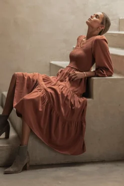 Smocked Tiered Midi Dress In Rust – FINAL SALE
