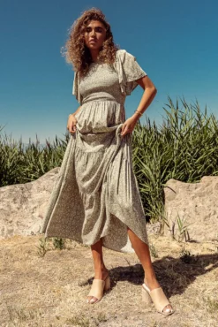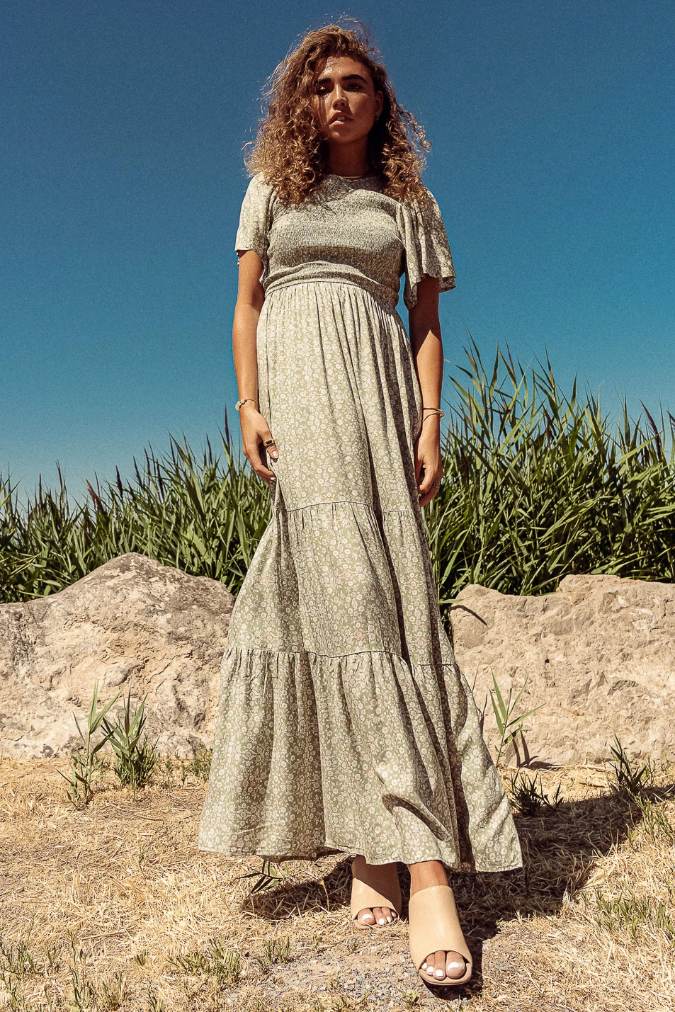 The Alejandra Floral Dress is designed with a flattering fit and luxurious materials, making it perfect for special occasions. Enhanced with a floral print and flutter sleeves, this dress is sure to turn heads.