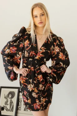 Its dress season! So add to your collection by purchasing our long sleeve Julia Floral Mini Dress featuring a beautiful floral pattern and a satin material. Perfect to pair with your favorite sandals.