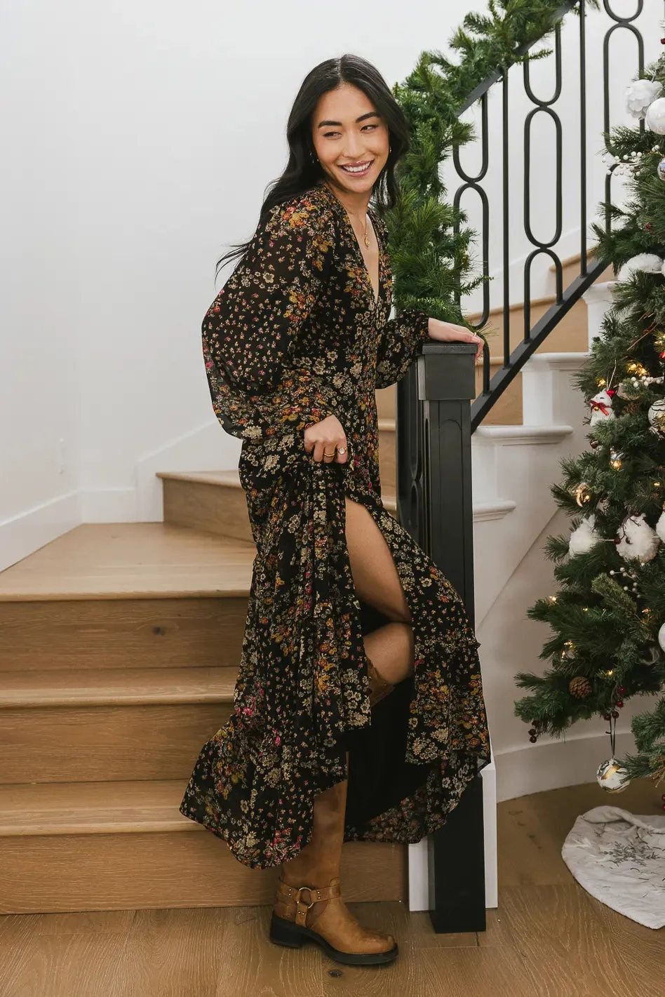 - Fitted Empire Waist with Velvet Detail