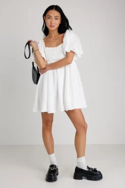 - Short Puff Sleeves with Elastic Cuffs and Shoulders