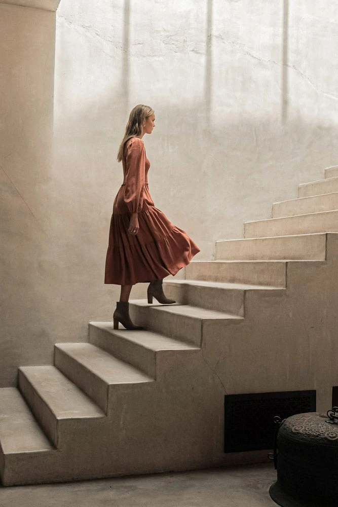 Our gorgeous Smocked Tiered Midi Dress is a must have for the upcoming season! You’ll be obsessed with the long sleeves, smocked bodice, and the flowy skirt. Perfect for a date night or brunch with the girls!