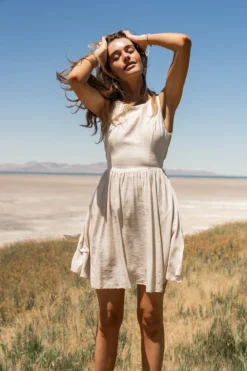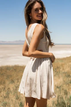 Make an entrance with our Waverly Mini Dress in Taupe featuring a cross back and tie detail. This dress is perfect for special occasions or a night out around the town.