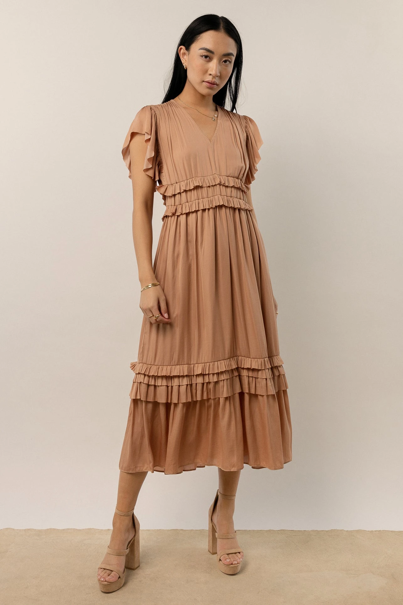 You’ll look and feel beautiful in our Willa Ruffle Dress! We are in love with the lightweight flowy material. This dress was made for date nights and for our bridesmaids. Dress with your favorite heels or boots to create an adorable outfit.