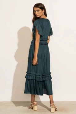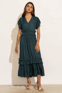 - Midi Length with Ruffle Detailing on the Skirt